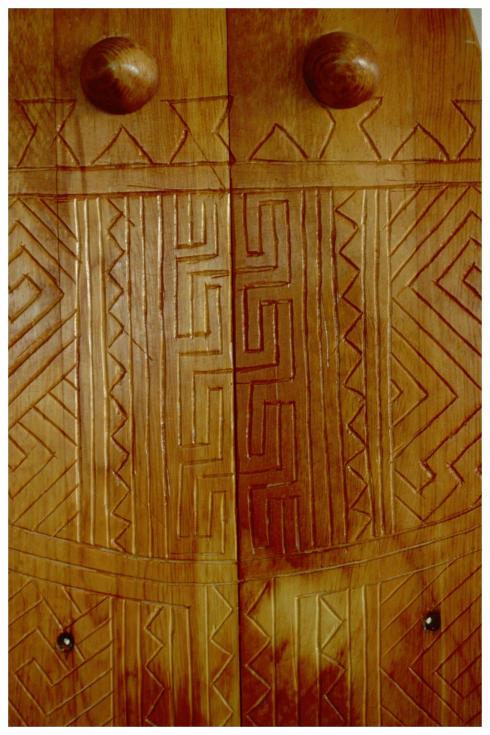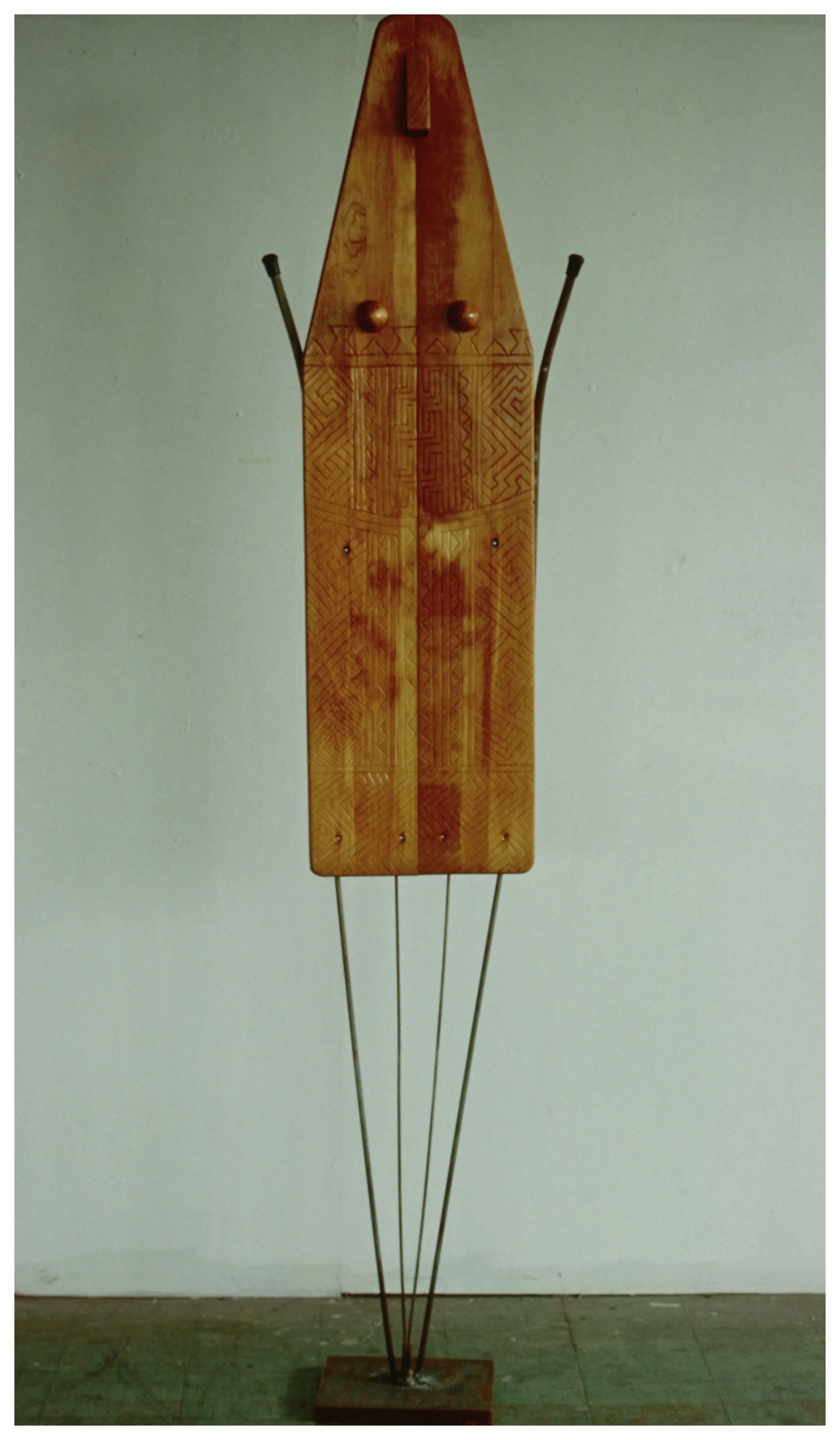Finally, she re-imagined the goddesses of pre-patriarchy. Goddess I, made from an old ironing board, is based on a 5c BC stone figure found in Hungary. Goddess II - Astarte is based on Astarte/ Ashera/ Ishtar legends found in the Bible and other ancient sources.
