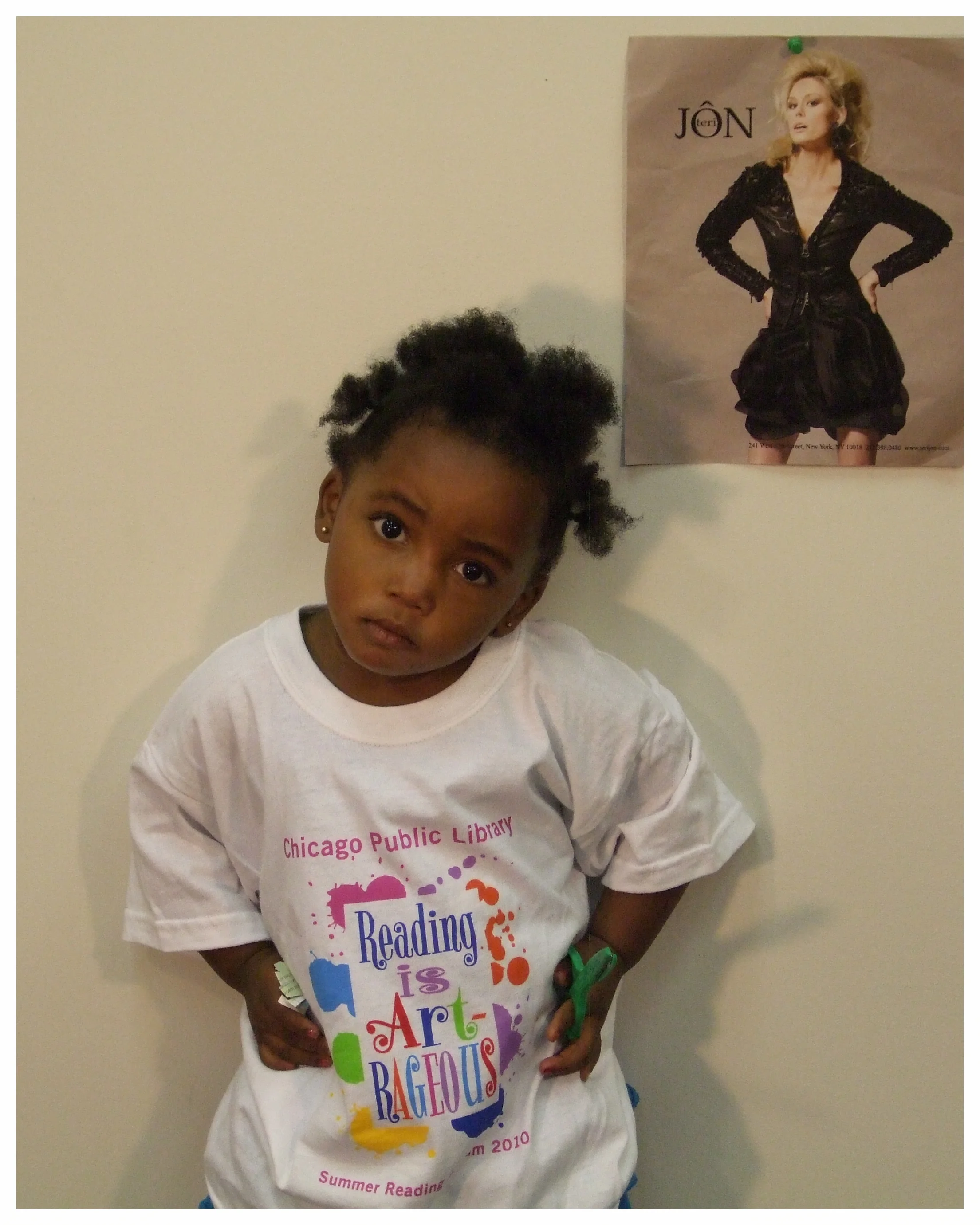 This project was designed to help kids (young and old) really look at advertising, and see how media images are constructed to manipulate our self-image. The children were asked to pick an ad from the New York Times Fashion Magazine, study it, and pose themselves as they saw the models do.